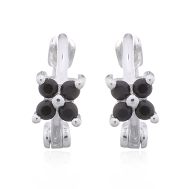 CZ Black Flower 925 Silver Huggie Hoop Earrings
