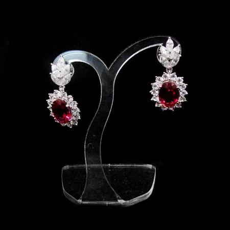 This exquisite pair of CZ earrings goes well with your daily outfit. The oval-shaped red main stones are complemented by small white stones around them. The well-polished pieces shine brightly under light.