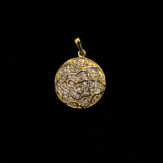 This round CZ pendant is fully covered in sparkling stones. The random curved pattern on the surface looks modern and casual. You can pair this pendant with everyday outfits in the day or fancy dresses in the night.