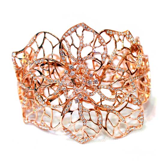 This CZ stone bangle comes with a layer of rose gold plating. The unique shape is eye-catching and offers an alluring appearance. This CZ stone bangle is a nice choice for elegant young ladies.