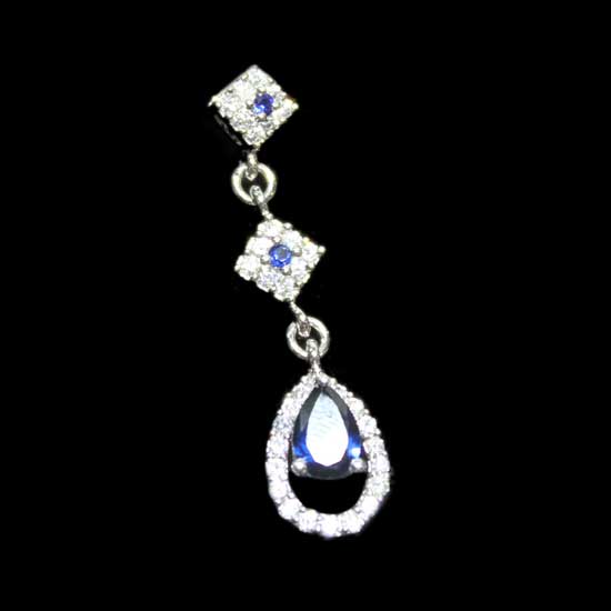 This alluring pendant features blue CZ stones surrounded by tiny white CZ stones. It showcases excellent craftsmanship with great attention to details. The delicate pendant is a wonderful gift choice for ladies on any occasion.