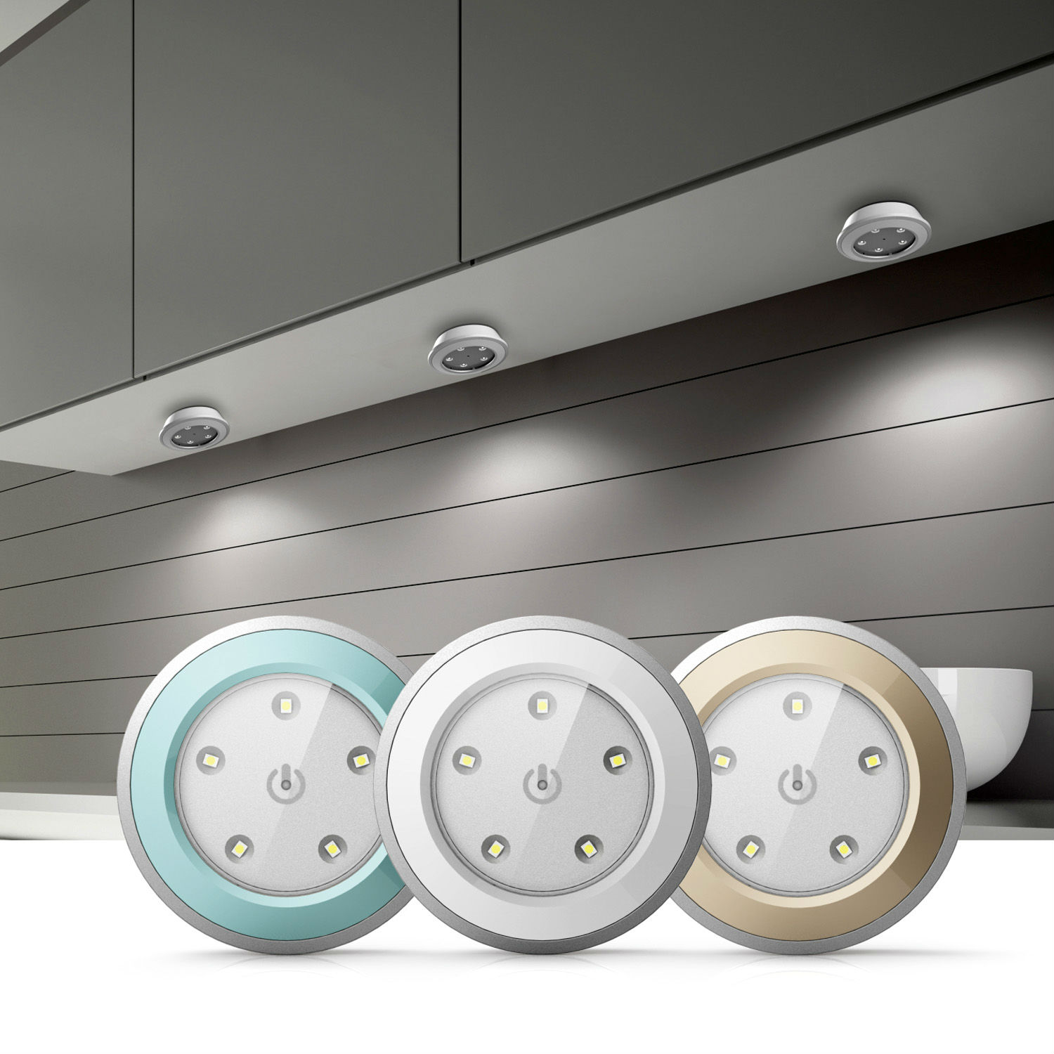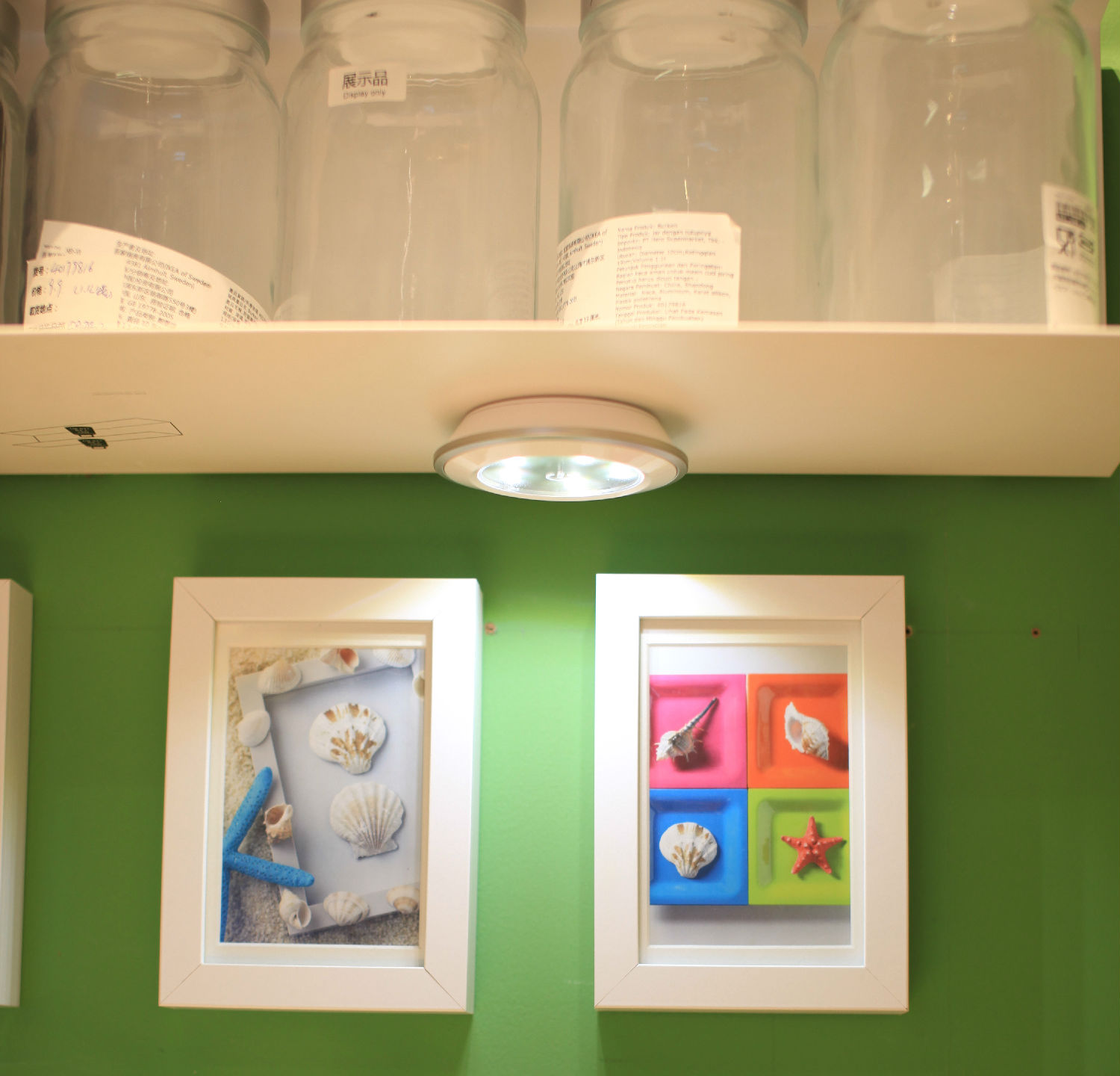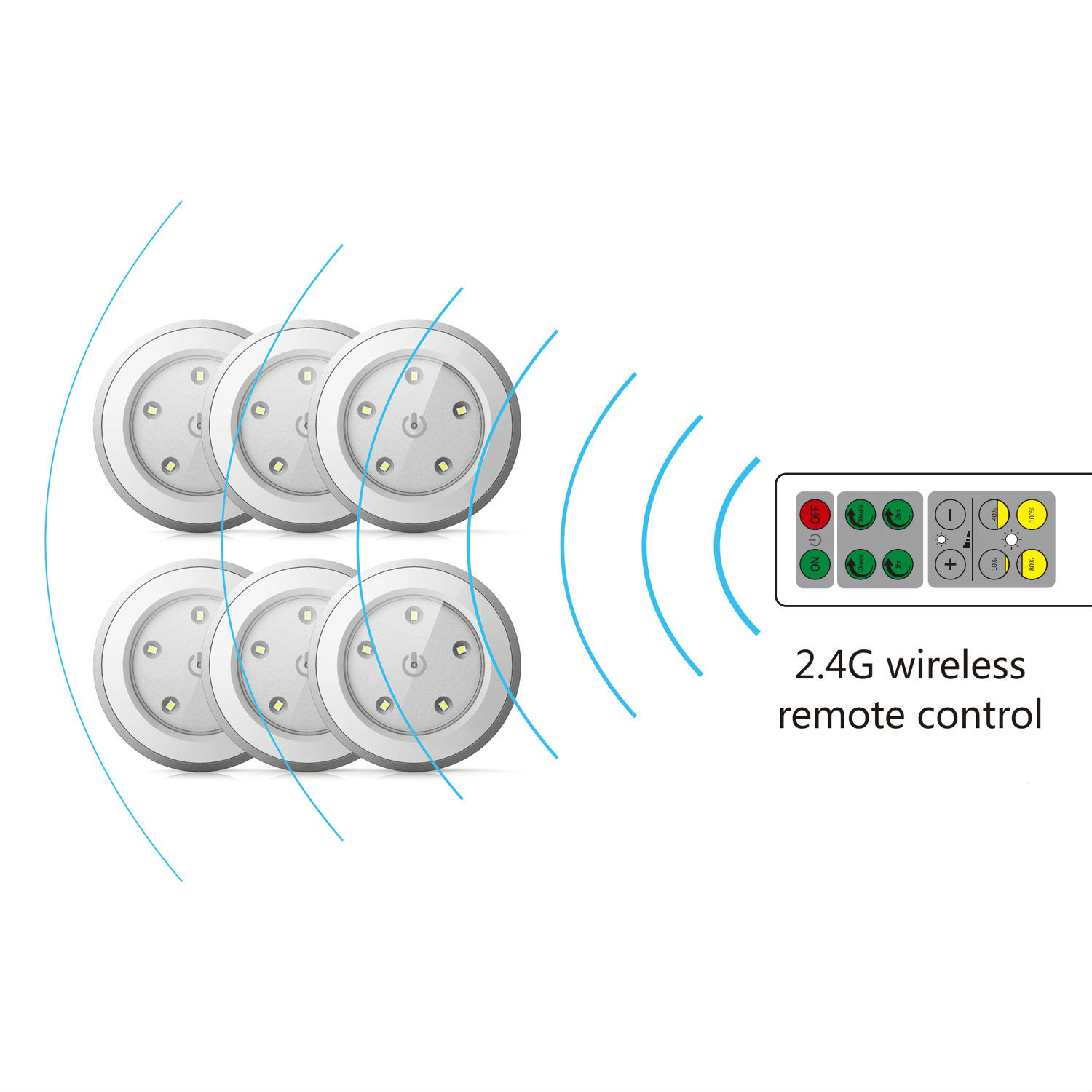 This cabinet light comes with a 2.4G wireless remote control switch that can control up to 24 lights with one push. The cabinet light comes in a round shape and is equipped with multiple LEDs as the light source. It can be turned on/off by pressing the center and can provide bright illumination for your cabinets.