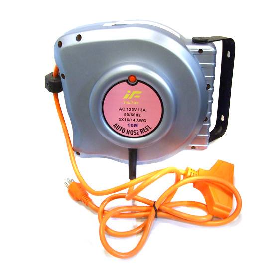 This cable reel helps you organize the cable easily. The long cable can be orderly retrieved by this reel. At the entrance is a black piece which prevents the electronic plug from going in with the cable, so that you will not lose the whole cable in the reel. There is a black and big handle for convenient carrying.