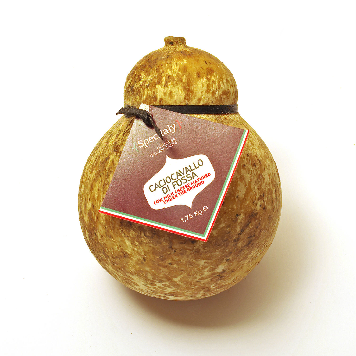 Spun paste seasoned cheese aged in tuff caves about 10 to 20 months