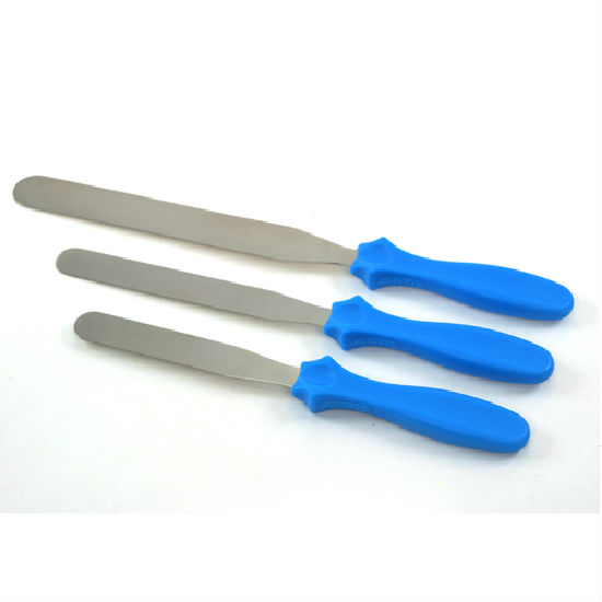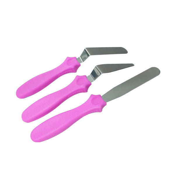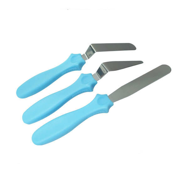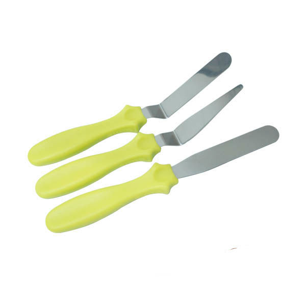 Made of food-grade stainless steel and plastic in superb quality, this 3-piece spatula set sports exceptional durability and reliability. The flexible blades allow you to give your cakes a precise and creative icing design while the streamlined handles let your hold the tools securely. Create professional appetizing desserts with this useful set.