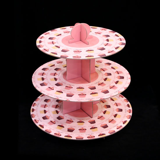 This is a cake stand that comes in bright colors for a vibrant look. It boasts a three-tiered design. The allover colorful cupcake patterns add a touch of style to the whole piece. This cake stand offers long-lasting durability.