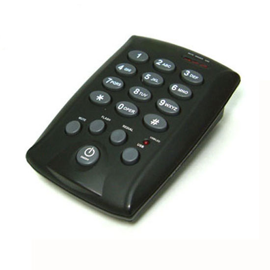 Shown here is an indoor telephone featuring a single-line keypad. The telephone allows easy control of the volume of microphone and speaker. The compact design saves space for desktops.