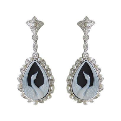 2 Cameo's 10.69ct; 58 Diamonds 0.56ct 18K Gold