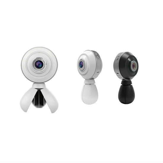 The pictured camera comes in a round shape and is mounted on a tripod stand. It has buttons on the side for control and is easy to set up. This camera offers superior image quality and is excellent for security applications.