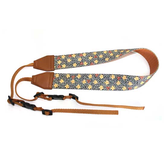 This eye-catching camera belt spotlights vibrant flower patterns. The high-quality belt is finely crafted of nylon material with imitation leather accents. The extra-wide belt ensures users' comfort even the entire weight is projected onto the neck and shoulder area.