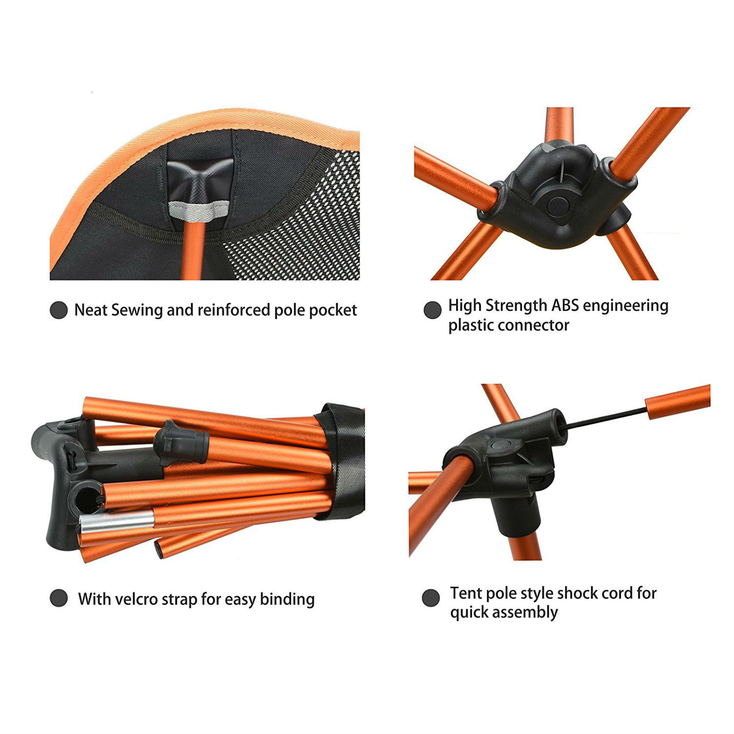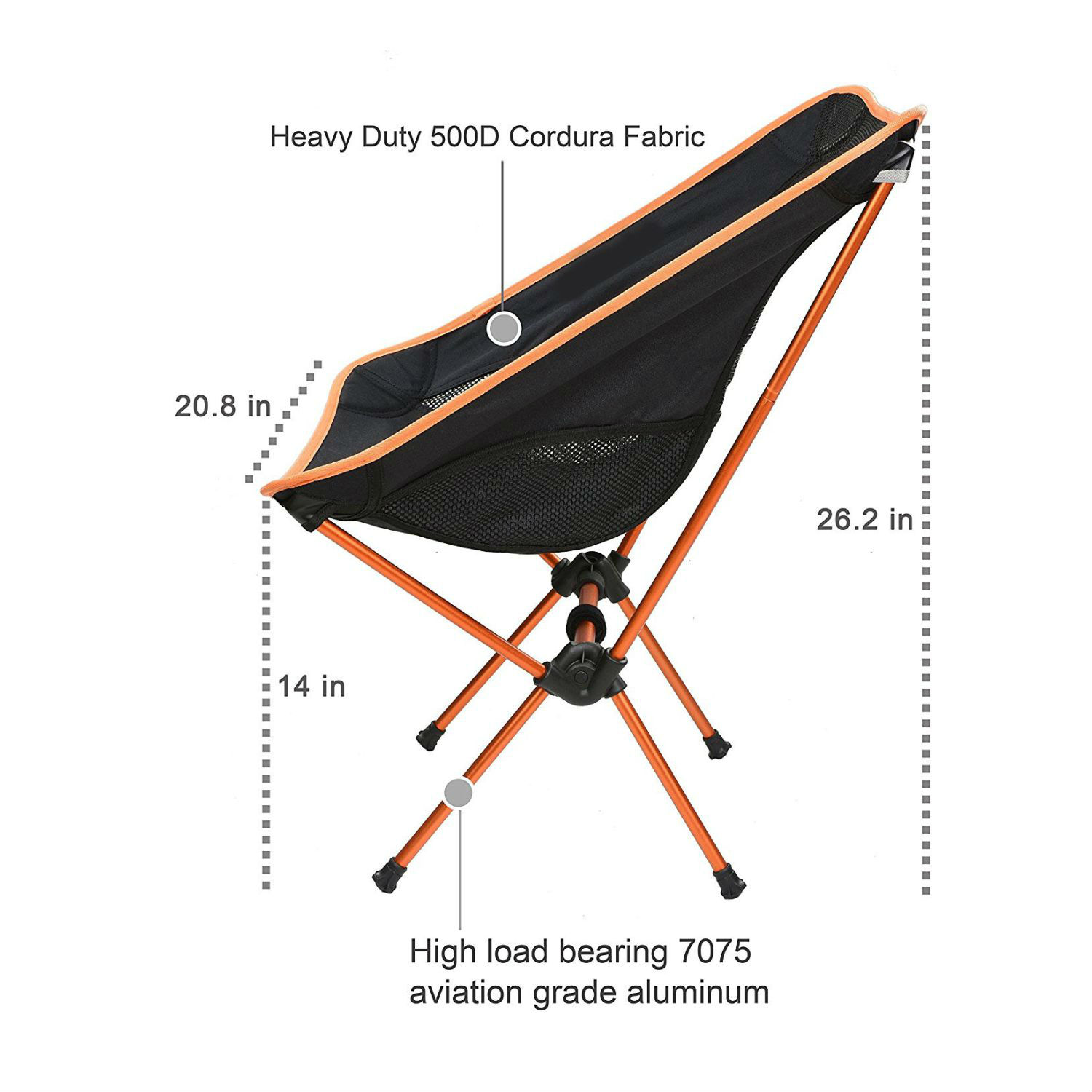 • Heavy Duty and Durable: Ripstop nylon seat + aircraft-grade corrosion-resistant aluminum alloy frame provides load capacity up to 250 pounds. 4 corners at the back of seat fabric are greatly reinforced to ensure reliability.