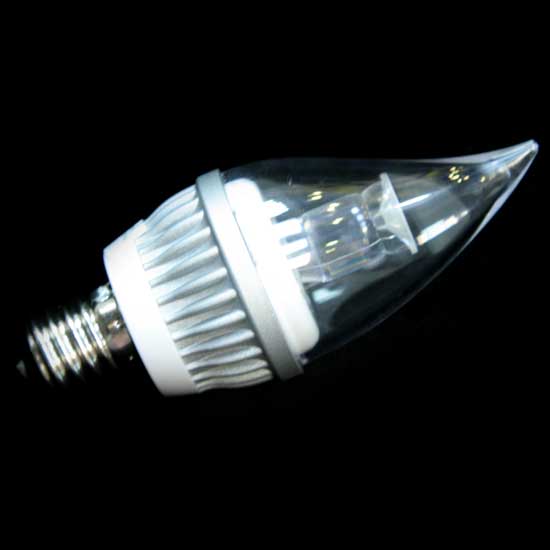 Showcased is a delicate candle bulb with a rated power of 3W. The bulb delivers exceptional brightness with a long serving life. This candle bulb makes a great choice for assorted decorative lamps.