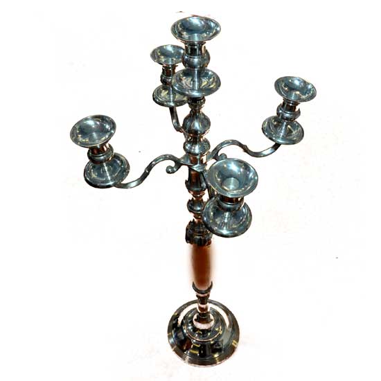 This candle holder flaunts five units. Boasting an antique style, it comes with a carved body and branches. The polished body reflects bright candle light. It adds a classic touch to the living room.