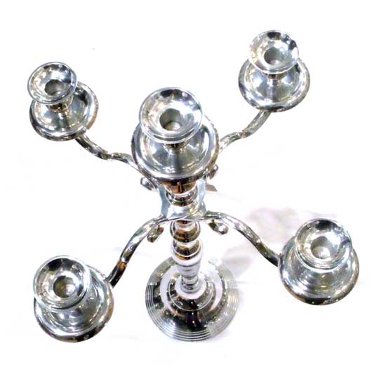 Highlighted is an aluminum candle holder that boasts a classical design. This decorative candle holder is designed with four arms, with the capability to hold five candles. Add this ornate candle holder to your home for excellent style.