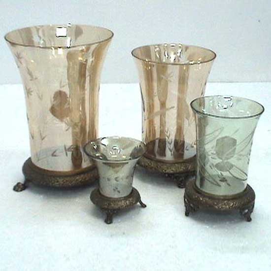 Featured here is a set of vintage-style candle holders with three-legged metal bases. The candle holders are finely designed with translucent Chinese paintings on the glass shades. They are perfect decorations for living rooms, hotels, restaurants, etc.