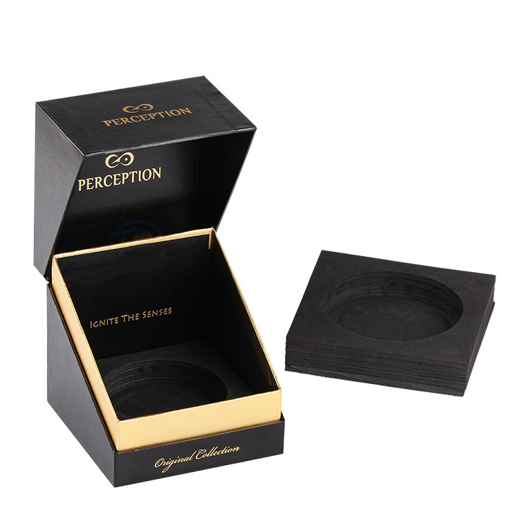 Eco Friendly Elegant Black Paper Box With Sponge Insert For Candle, made of paperboard and black sponge. It is printed with superior ccoated paper, which greatly strengthenes visual impulse. Using this paper box for putting candles is the best choice. And the thicknesses and materials of papers can be selected to meet your special needs. Also, colors, sizes and patterns can be customized to perfectly match your product. If you have any thoughts, please do not hesitate to talk to us. We are always here.