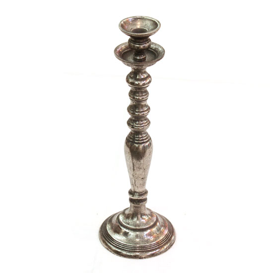 The beautiful candle stand is made out of RNAP material. The faded effect on the silvery exterior offers an antique feeling. It stands stably on the surface with a round-shaped base with rims.