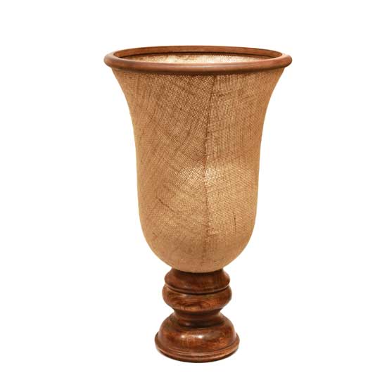 This brownish candle stand comes with a tube-like design with a wide opening. It features a cotton shade and a wooden stand for a natural touch. This large-sized candle stand is great for home decorations.