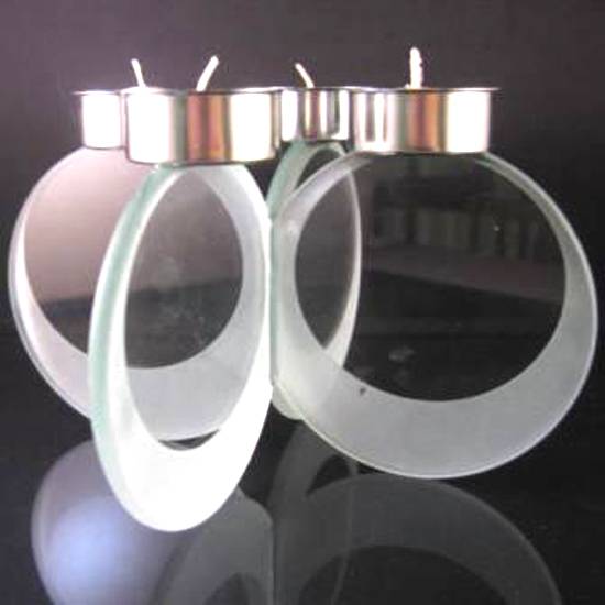 This is a glass candle honder that is contemporary in style. Balancing entirely on four rounded glass frames, this candlestick holder is a sight to behold. Elegantly modern with a fine finish, it is a great addition to any home.