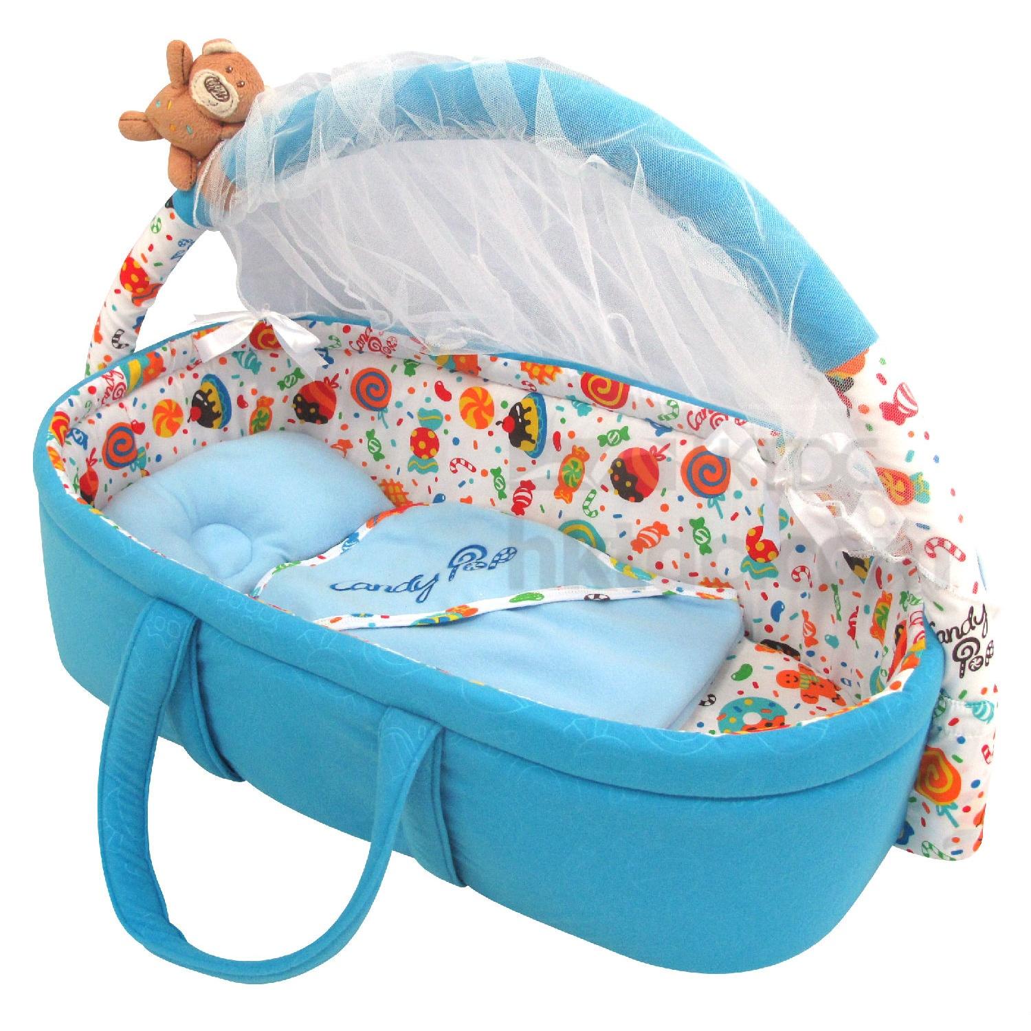Included : Mosquito Net, Soft Toys, Blanket, Pillow