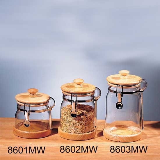 These stylish and quality canisters are constructed of glass containers with wooden lids and bases. The canisters are designed with metal side buckles for better sealability. These airtight canisters can keep food dry and fresh for extended period of time.