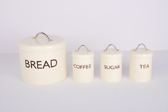 • With 4 round canisters for bread, coffee, sugar and tea.