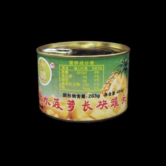 Displayed is a can of pineapple that comes in slices. Made from carefully selected pineapples, this canned food is juicy, sweet and refreshing. This high quality canned pineapple is suitable to be used in salad toppings and cooking.