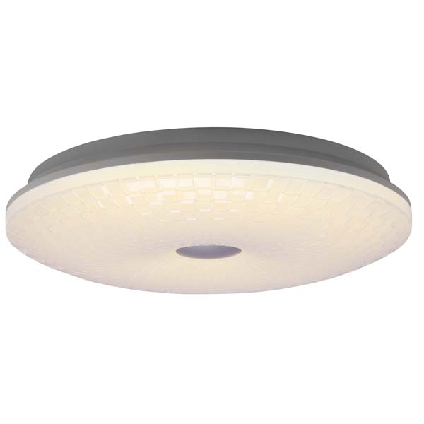 This is a round ceiling - mounted light fixture. The edge of the light body is a dark gray frame. The lampshade is milky white and has a texture design similar to a grid pattern on the surface. There is a small dark - colored dot area in the center of the lampshade, and the light shines softly through the lampshade.