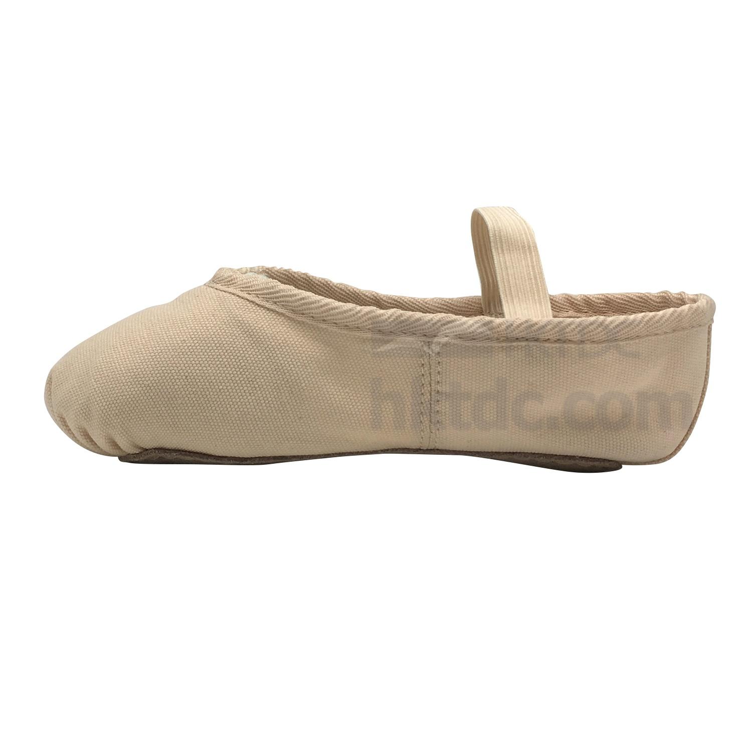This pair of ballet slippers features a pre-sewn arch that keeps the shoe pulled tight to the bottom of the foot. The split-sole enhances the arch and the padded heel provides support. It also comes with an elastic drawstring for a customized fit. Made of canvas, these ballet shoes are soft and breathable.