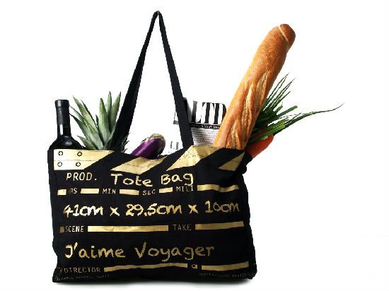 This novel tote bag features the design of a director's clapboard. The flexible tote bag can be folded into a small zippered bag for easy portability. The casual tote bag is perfect for travel and shopping.