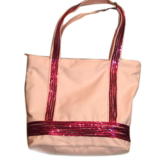 Complete your stylish look with this elegant handbag. The canvas construction allows durable use. The handles and the bottom of the bodice are adored with contrasting colors for an eye-catching look.