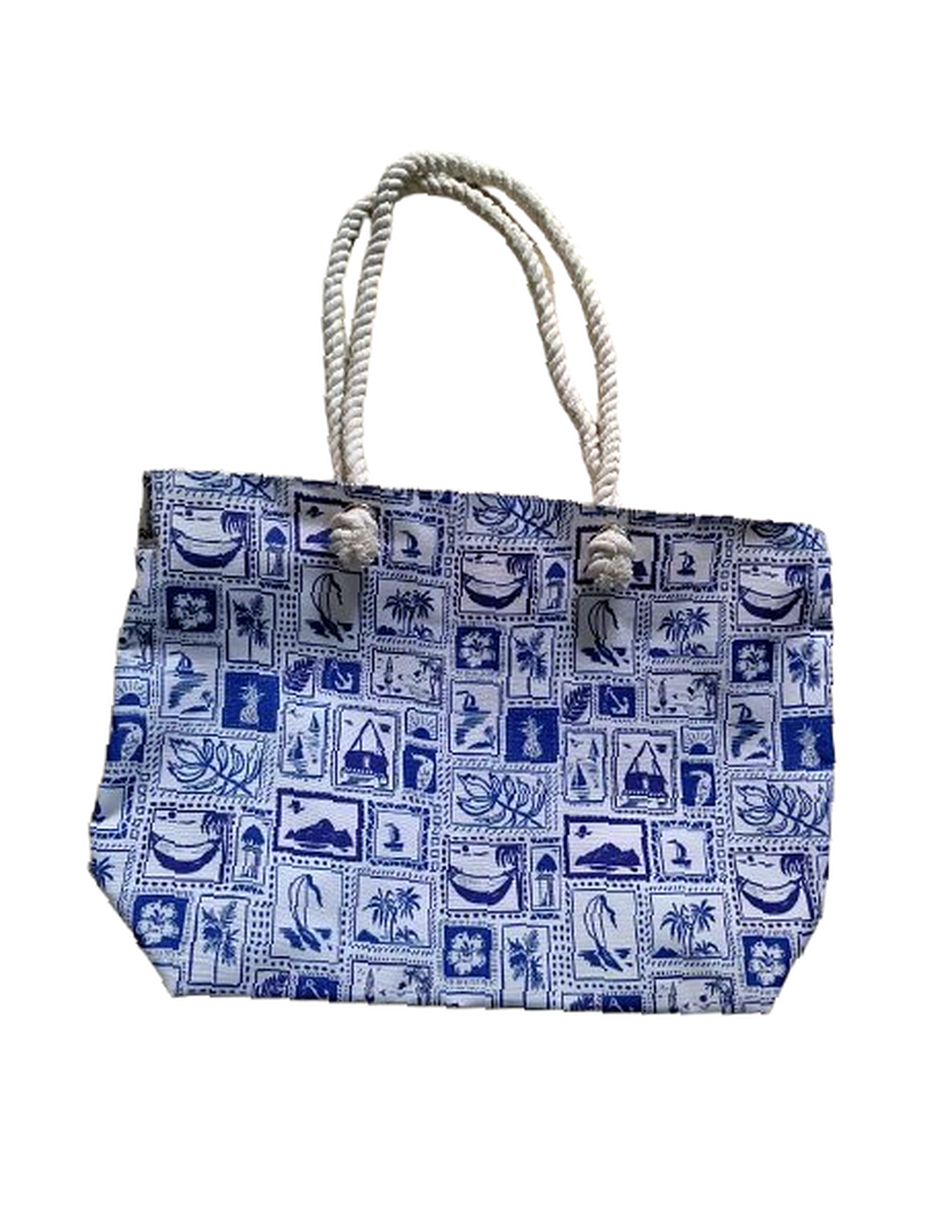 Laminated Canvas Tote Bag with Rope Handles – Nautical Print