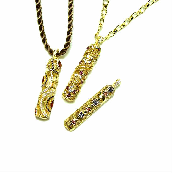 - Capsule pendant encrusted with small gemstones.