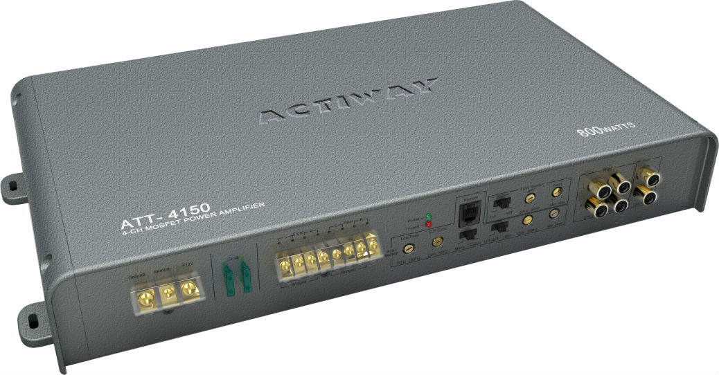 Car amplifier, Class AB, four channel, RMS 4x75W,one-side layout.