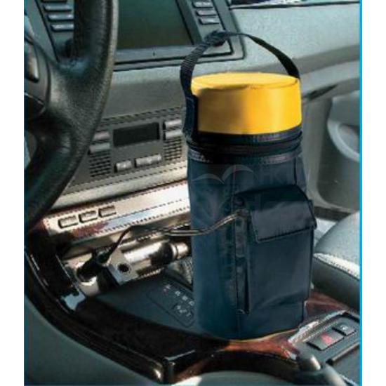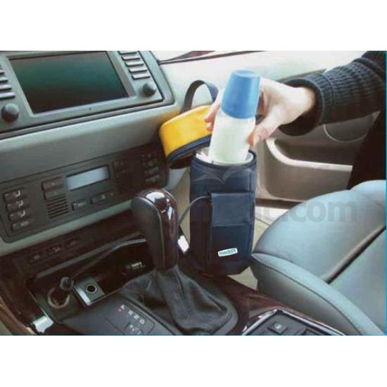 Showcased is a car bottle warmer especially designed for couples who want to travel with their baby. The bottle warmer helps warm all baby bottles and food jars quickly in your car. The bottle warmer accommodates all baby bottle sizes for users' convenience.