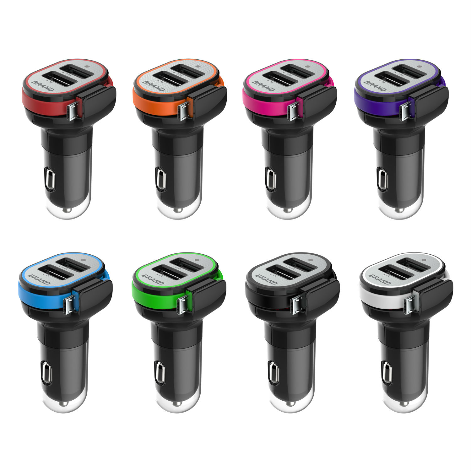 In car chager 3.4A dual contact with data cable Input 12V-24V Out put 3.4A with 24AWG*2C+28AWG*2C+ with OD2.0*5.8
