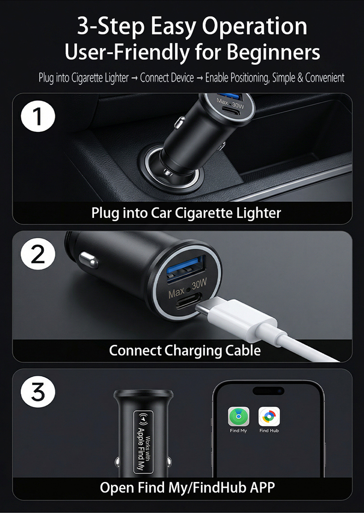 Car Charger GPS Tracker (Apple & Android 2-in-1)