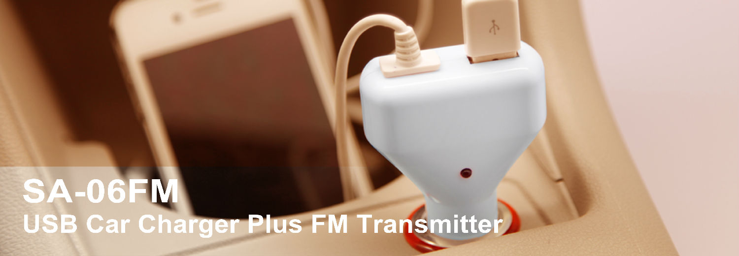 SA06FM, 1A, USB Car Charger with FM Transmitter
