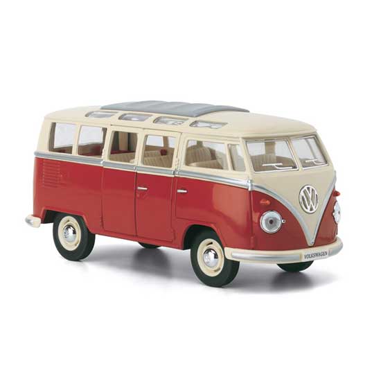 This model car is officially licensed with the 1962 Volkswagen classical bus. The model boasts authentic colors, realistic graphics with various moving parts. With striking designs and refined details, this bus model is a great addition to your collectibles.