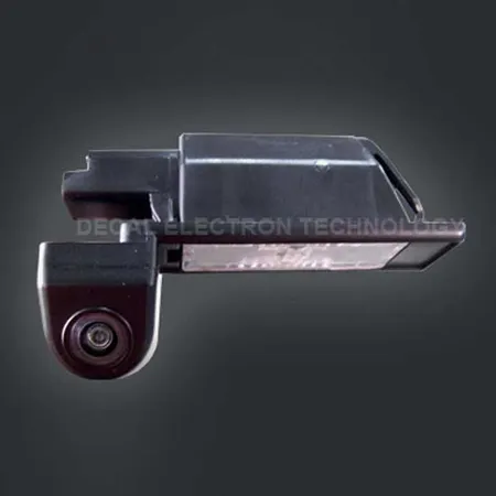 Displayed is a car rear-view camera with a sleek design which is ideal to install under a bumper. The high-definition image sensor with an IR LED light will offer clear pictures in the dark. This rear-view camera is an excellent reverse parking helper to reduce blind spots.