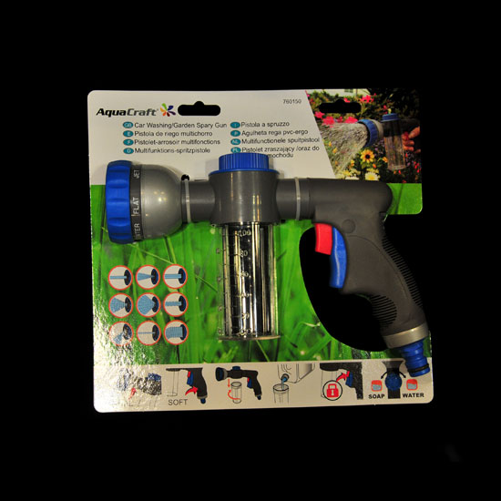 As shown is a car washing gun coming with a detachable design. It features 9 different spray patterns for handling different tasks. More importantly, it can be used as a garden spray gun.