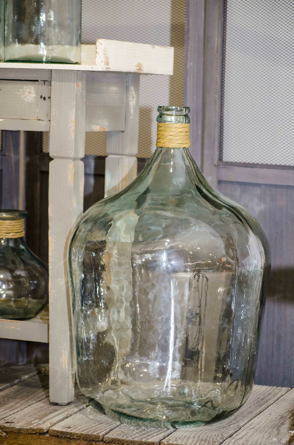 Nature meet with this item made of 100% recycled glass and decorated with raffia