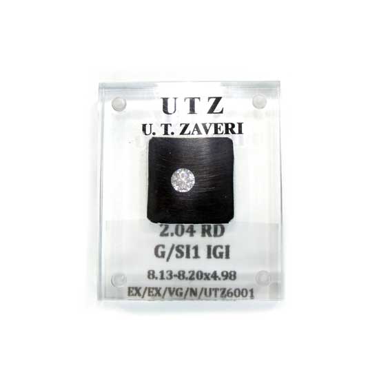 This 2.04-carat white diamond features a round-brilliant cut. The finely cut and polished diamond exhibits dazzling brilliance at all angles. This sparkling diamond is ideal for making earrings, finger rings, necklaces, etc.