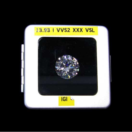 This carat diamond flaunts a classic round brilliant cut and weighs 13.93 carats. It is delicately cut with exquisite craftsmanship and brilliant sparkles. This ravishing diamond promises impressive clarity and hardness.
