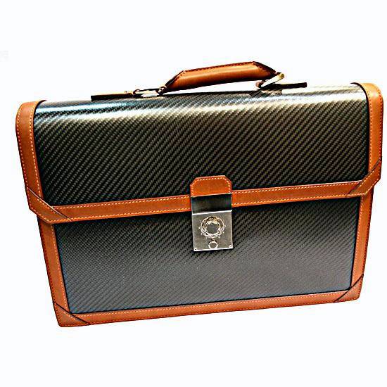 The carbon fiber briefcase boasts leather borders for an executive look. The cushioned leather handles allow maximum carrying comfort. Look professional and stylish when going to work and meetings with this good-looking carbon fiber briefcase.