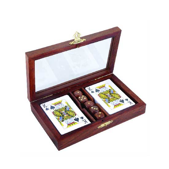 This is a card and dice game that comes with two sets of cards. Featuring dices made of sheesham wood, this game set is durable and fun to play. All items are packed in a box with a glass lid for a neat presentation.
