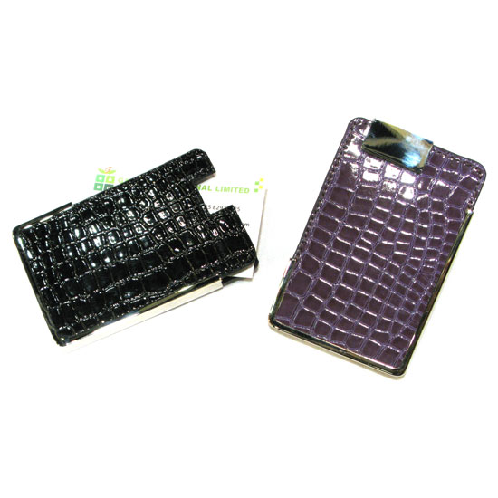 This is a name card box designed in a compact rectangular shape. The shell features imitation leather patterns with a glossy finish. The elegant design makes it a great choice for keeping name cards.