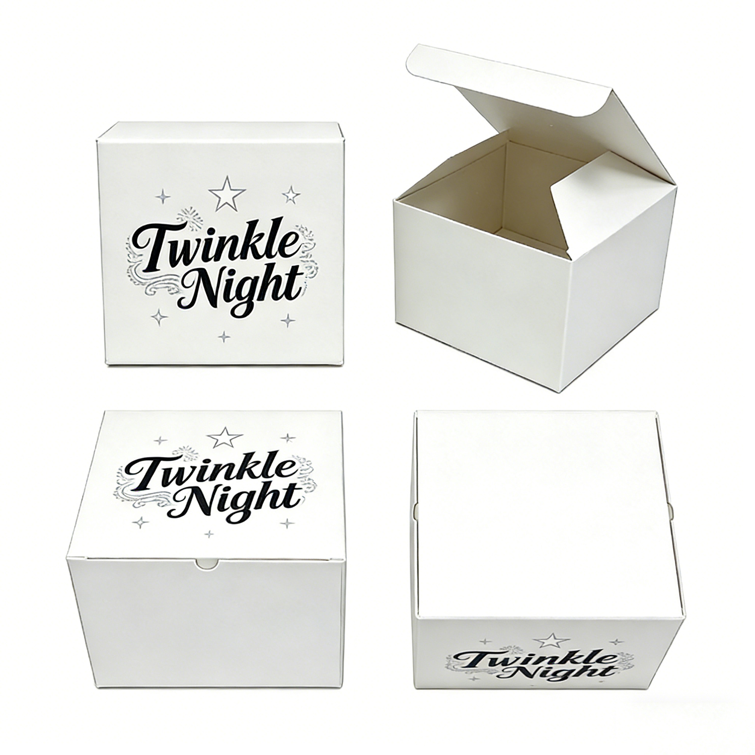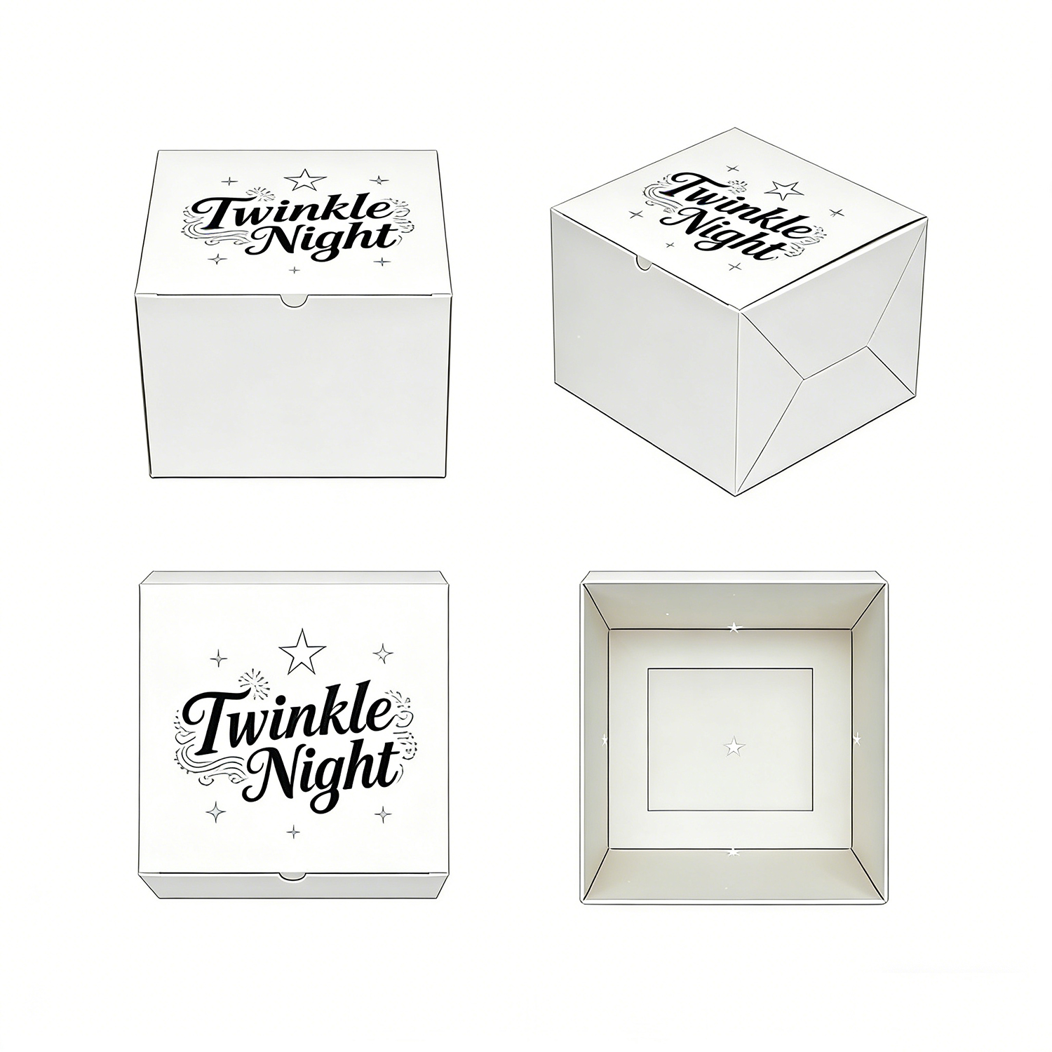 Pure white base color for a clean and fresh appearance Black typography for strong contrast and readability “Twinkle Night” themed lettering for a playful yet elegant touch Small star motifs adding a light decorative element Balanced layout for a modern, uncluttered look
