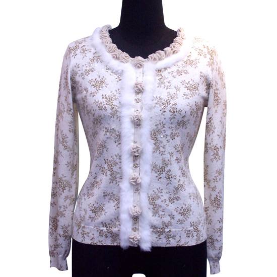 This is a cardigan for ladies. It is designed with round neckline. This cardigan has floral patterns all over.