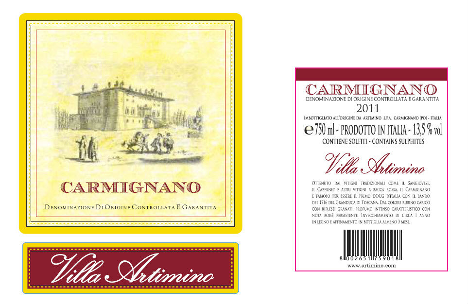 This harmonic and sophisticated red wine was made from a mix of Sangiovese, Cabernet Sauvignon and Merlot grapes grown in the Carmignano region in Italy. It delivers a sophisticated and pleasantly intense sensation. The harmonic, persistent and pleasant tannin flavor integrates gently with the floral and fruit jelly aromas to leave a slight black pepper and liquorice aftertaste in the mouth.